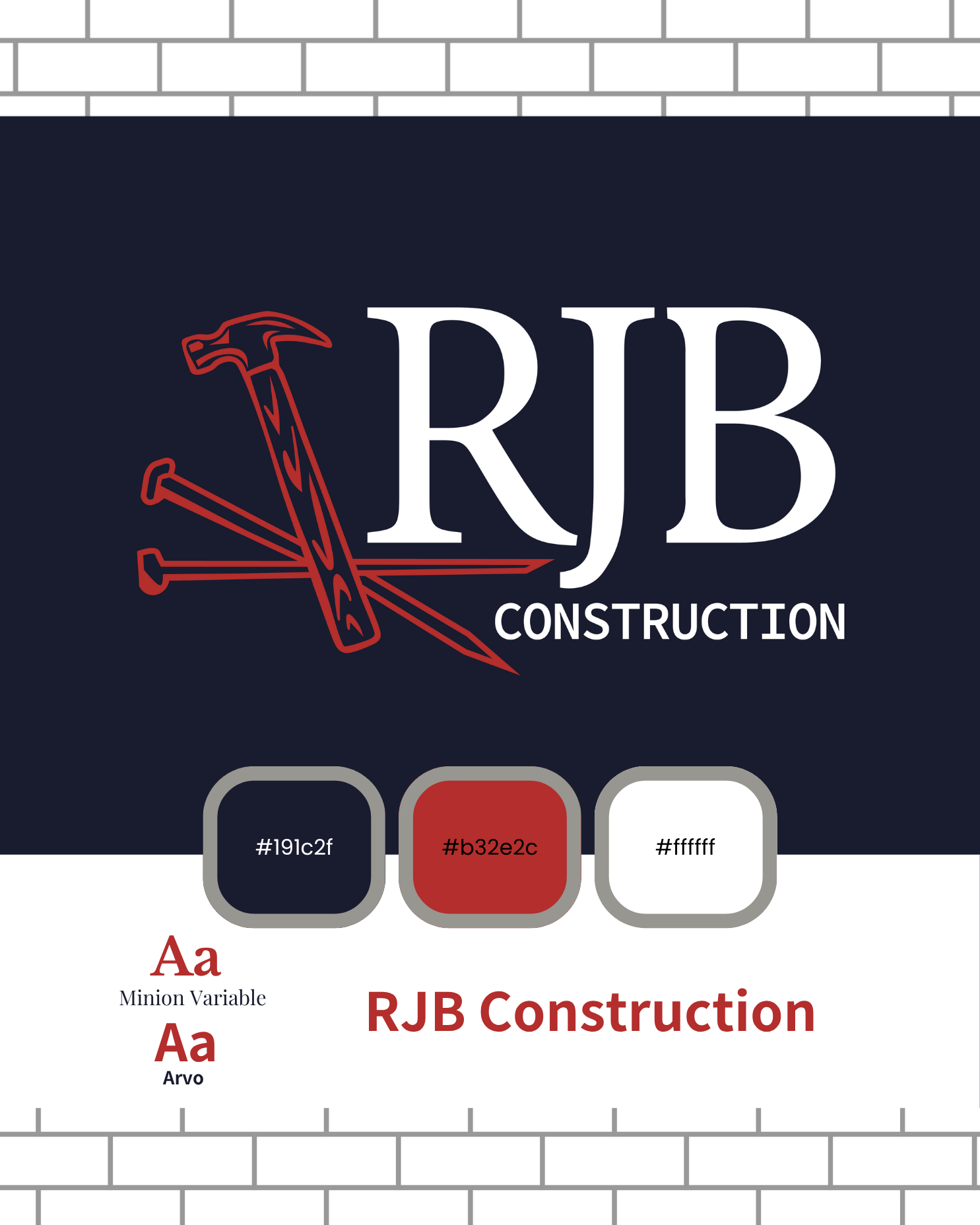 A custom logo and branding system for RJB Construction, designed to convey strength, craftsmanship, and reliability.